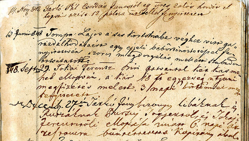 Gyakori volt a lakodalomban elkövetett verekedés, éjszakai tivornyázás, istenkáromlás, rágalmazás miatt kiszabott büntetés, de „gyanús korhelység” is előfordult. A visszaesőkkel szemben szigorúan, eréllyel léptek fel. Bíró Ferenc neve 1846-ban két ízben is a városi kisebb kihágásokat, büntetéseket nyilvántartó Fekete könyvbe került, először január 28-án jegyezték fel Vég Antalné ablakának betöréséért, ekkor a kártérítésen felül 48 óra áristommal büntették. Február 24-én pedig Kálló József csendbiztos az uradalmi tömlöcbe kísérte Faragó Pál megvérengzése miatt. Bíró uram 1848-ban ismét vétkezett, ekkor lakodalmi verekedés miatt zárták el és 16 pálcát is elszenvedett.