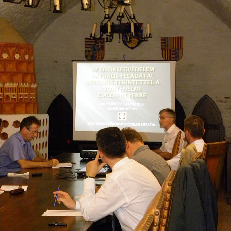 A konferencia első előadója dr. Fejérdy Tamás, a Kulturális Örökségvédelmi Hivatal elnökhelyettese volt, aki az örökségvédelem aktuális feladatairól és a történelmi emlékhelyek szerepéről számolt be az érdeklődőknek.