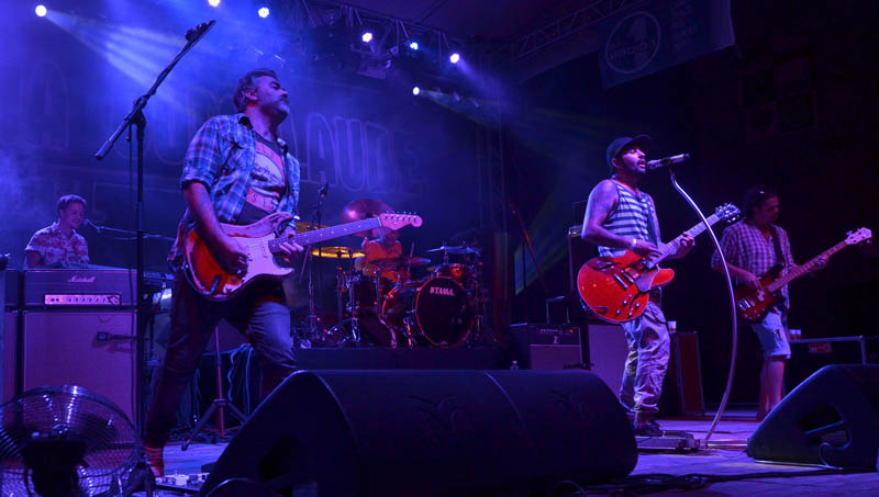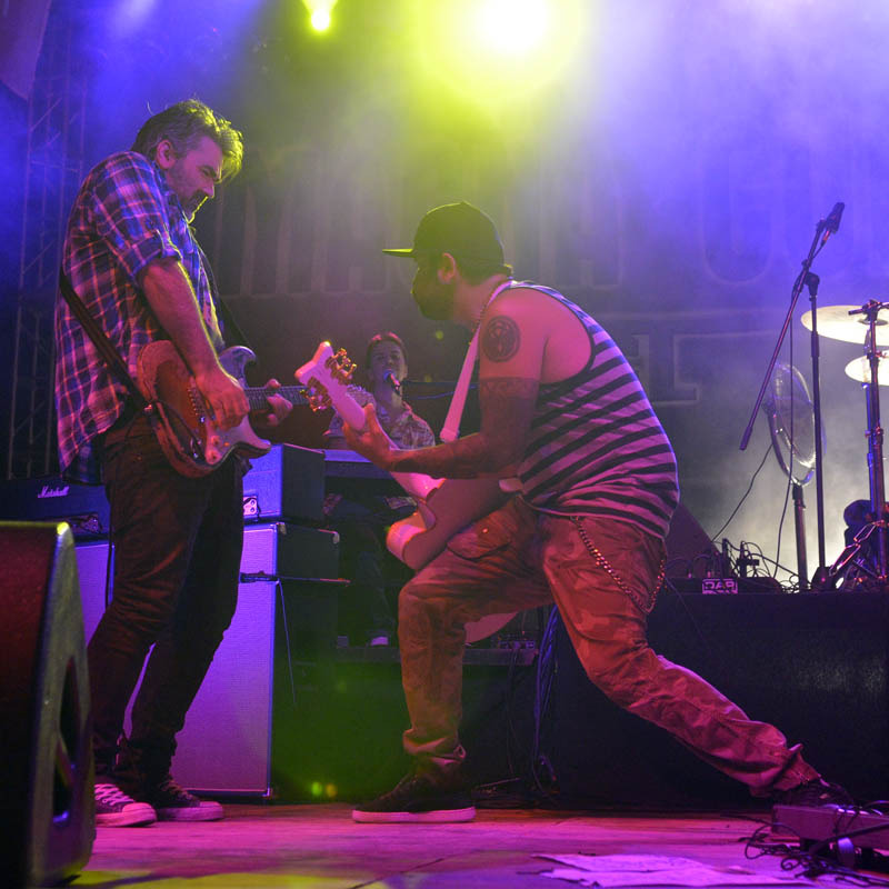 Aztán belecsapott a húrokba a banda, a Mező Misi, Szabó Tibor, Kara Misa, Kilián Imre és Lesták Márton tagokból álló zenekar felvonultatta hazai közönségének slágerei sorát is. Dalok hangzottak el a legutóbbi, tavaly megjelent Belső égés című lemezről, és természetesen nem maradhattak el a régi ismerős számok sem, mint a Minden állomás, a Vidéki sanzon, a Te légy most, a Színezd újra! vagy az Átkozott nők. A bulizó tömeg csak nem akarta leengedni a zenekart a színpadról, újra ráadást kértek, hogy végül a Pálinkadalra is bulizhassanak.