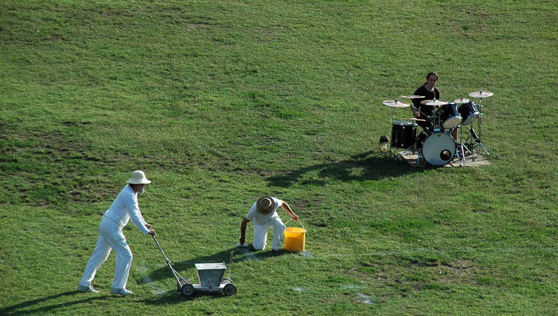 Idén tízedik éve, hogy a 3T csoport (a gyulai Kukár István, a békéscsabai Novák Attila és szarvasi Szuhaj György) különleges előadásával meghökkenti, elgondolkodtatja, vagy éppen összezavarja a népet. Az elmúlt évtized összegzéseképpen ezúttal a gyulai Dürer Terembe, illetve a Várkertbe invitálták közönségüket a kortárs alkotók, hogy szokás szerint a megszokottól eltérően kezdjék el a tárlatot. A megjelentek nem is számítottak hagyományos megnyitóra. A vár előtti téren, magányosan egy dobos srác (Lovas Dávid) kezdte el püfölni a bőröket, ezalatt a 3T(anárember) a perui Nazca-vonalak mintájára hatalmas három „t” kirajzolásával jelezte az Univerzumnak jubileumát.