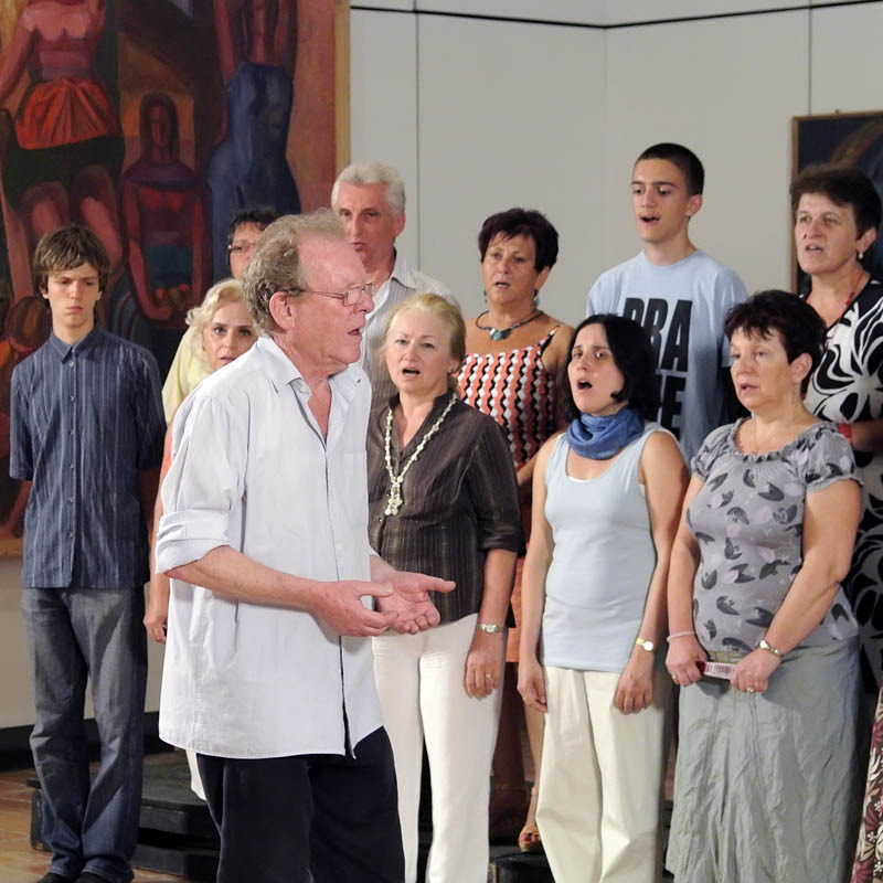 Phil Minton angol karvezető, énekes és zenész egy egészen elképesztő produkcióval érkezett városunkba, amelyet helyi emberekből verbuválódott kórus segítségével adott elő. A színpadon megjelenő, ismerős arcokból álló 26 tagú csapat tagjai többnyire nem énekesek, de még csak nem is szakmabeliek, ám a versenyműben való részvételük kétségkívül nyitottságról tett tanúbizonyságot.