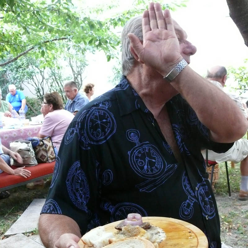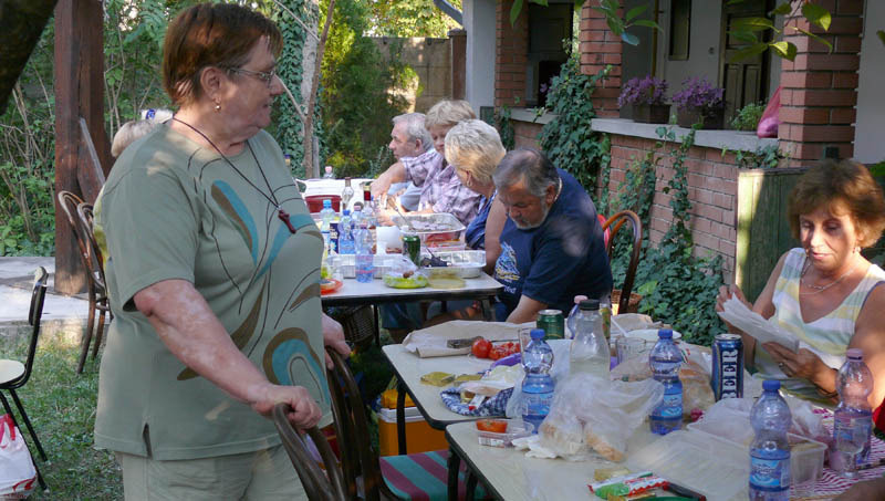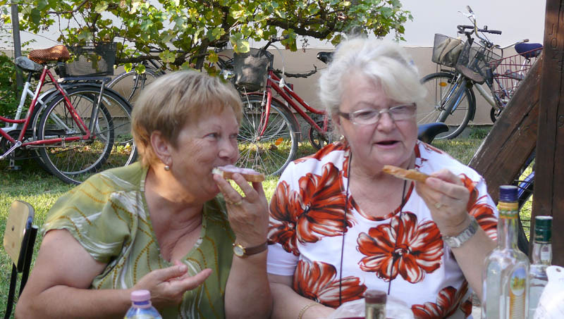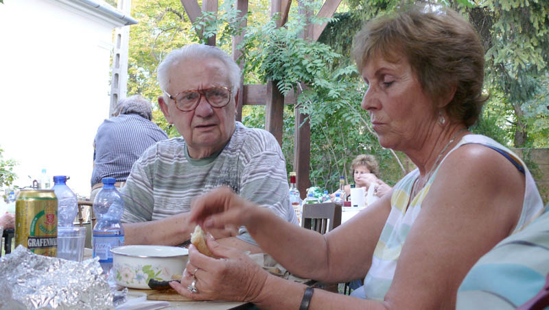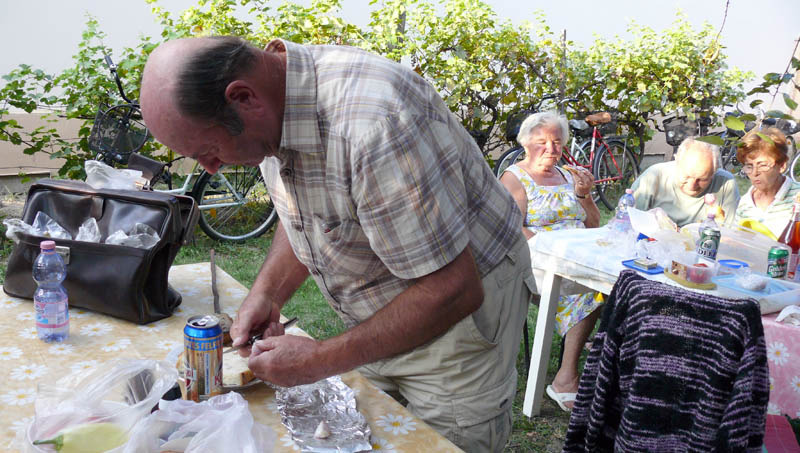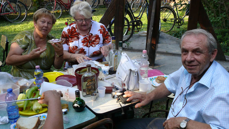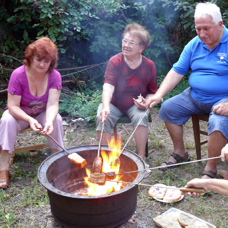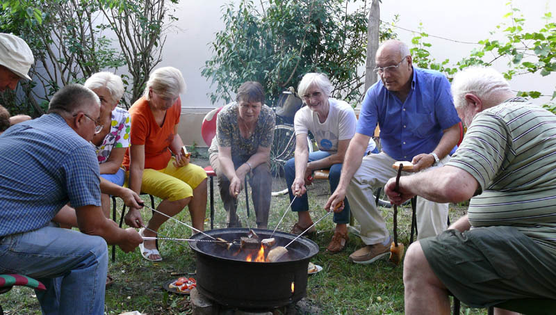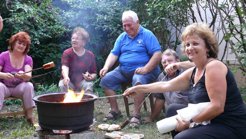 Szalonna, kolbász, házi pálinka, sütemény, összeszokott, jókedvű baráti társaság… Mi kellene több egy kellemes augusztusi esthez? A Gyulai Nyugdíjasok Polgári Egyesülete ma esti találkozóján mindez adott volt. Janics Borbála elnök kedves invitálásának köszönhetően a Gyulai Hírlap tudósítója is részt vett a szalonnasütős találkozón. Bár ezúttal harmonikaszó nem kísérte a dalolást, a falatozás közben és után is fel-felcsendültek vidám nóták.