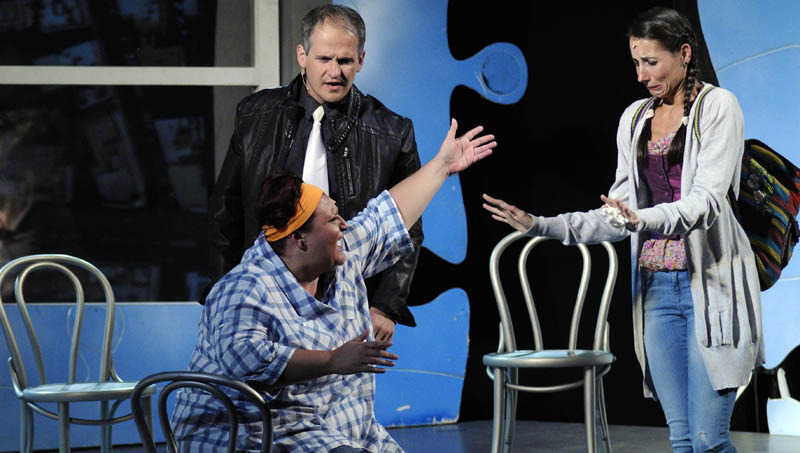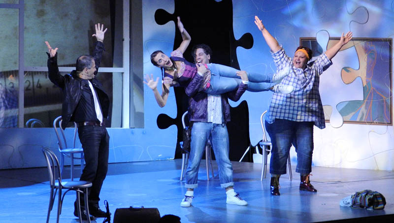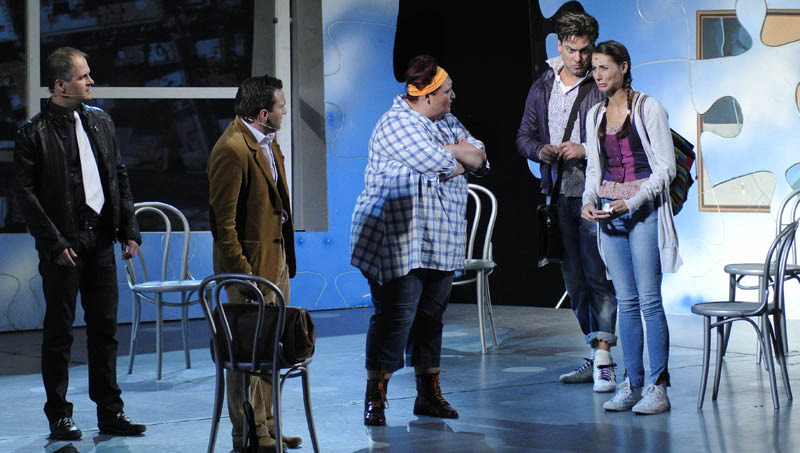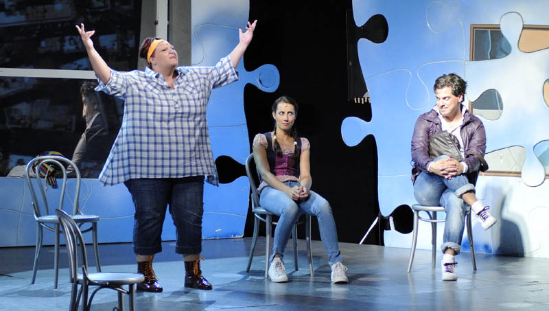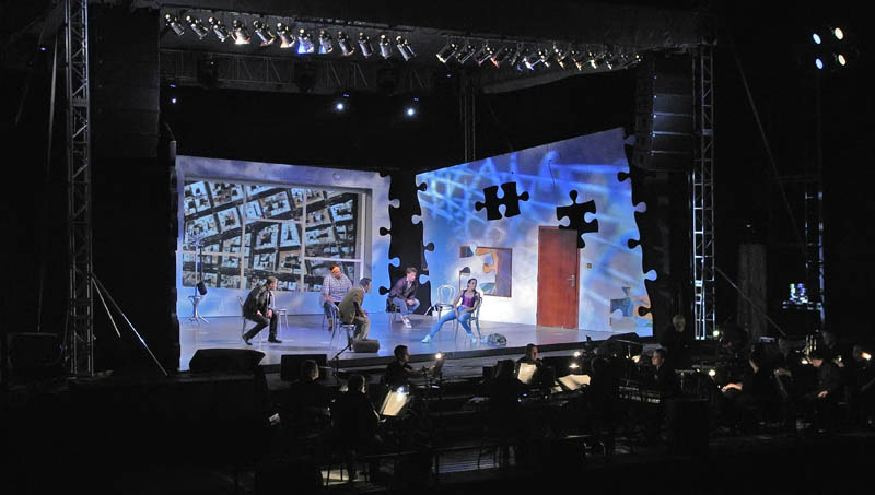 A történetből adódóan a színpadon alig volt néhány bútordarab, azonban a háttérben elhelyezett, ablakként funkcionáló, óriási képernyő – melyen a zenei betéteknél mindig más-más kép jelent meg –, valamint a látványos, puzzle-darabokból összeálló fal jól ellensúlyozta a színpadkép egyszerűségét. Az igényes élőzenével kísért kétrészes musical elsősorban a humoros párbeszédekre és a jól kidolgozott karakterekre épült. A műfaj hagyományaira is reflektáló, fordulatos, szórakoztató előadást talán még rendhagyóbbá lehetett volna tenni egy modernebb hangzásvilággal.