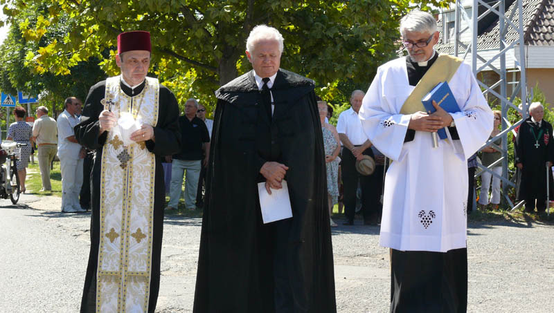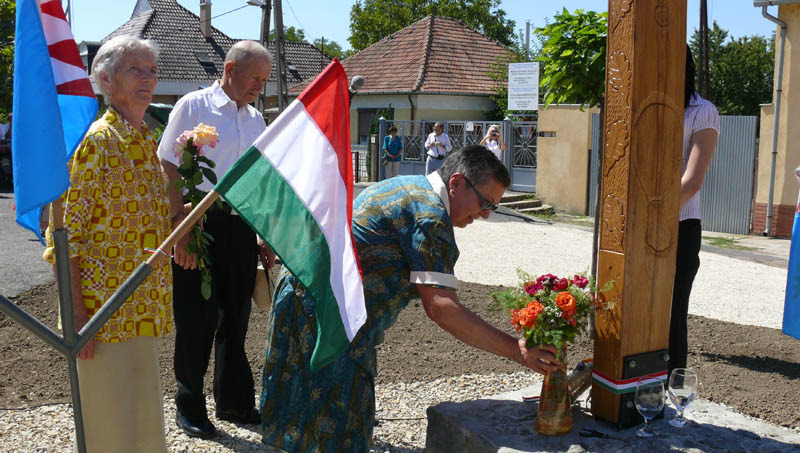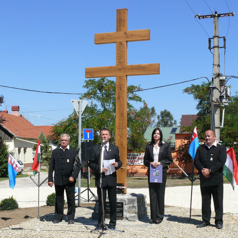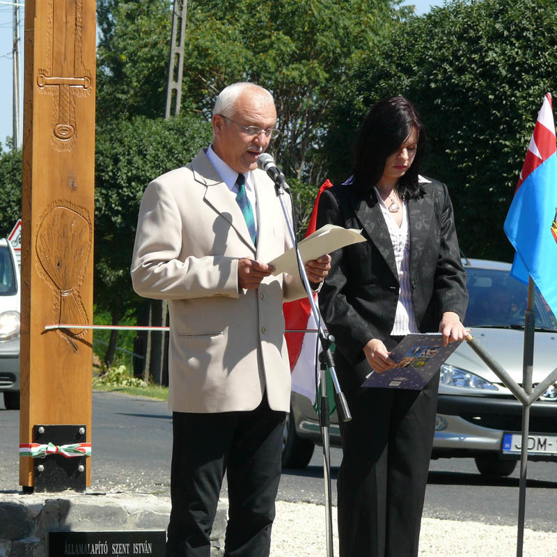 A kereszt megszületésének körülményeiről az alkotás tervezője és elkészítője, vitéz lovag Füredi Gábor képzőművész, a Történelmi Vitézi Rend Békés megyei székkapitánya beszélt, majd az ország versmondója, Soós Imre szavalata hangzott el. Nagy László, a Harruckern János Közoltatási Intézmény tanára Szent István állammegtartó tevékenységéről adott történelmi áttekintést. A kereszt felszentelését és megáldását Karsai Károly római katolikus diakónus, Nagy László református nyugalmazott püspök helyettes és Árdeleán Pál román ortodox püspöki vikárius végezte. Az ünnepséget – Kádár Ferenc jóvoltából - tárogatómuzsikával kísért székely himnusz és a magyarok világhimnusza zárta.