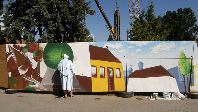 Az élményfürdő építkezés területét lezáró kerítésszakasz új, színes köntösbe öltözött fiatal, tehetségek jóvoltából. A Gyulai Várfürdő ötlete alapján Nagy Gábor, Tar Brigitta, Mészár Norbert és Vári Hunor egyetemista és középiskolás diákok időtálló festékkel gyulai képeket festettek fel a felületre.