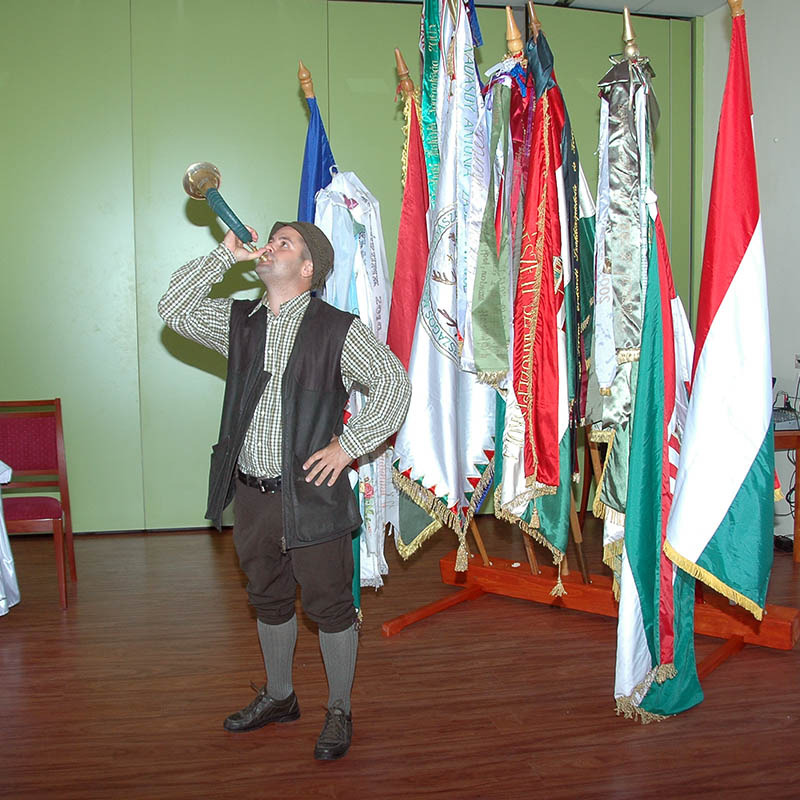 Horváth Péter legényestánca után Török Henrik, az Ifjúsági Vadászvetélkedő főszervezője szól a jelenlévőkhöz.