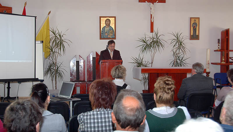 A megnyitó ünnepség után kezdődött a konferencia szakmai része, amelynek első előadója, dr. Abonyi Lajos, az Orosházi Német nemzetiségi Önkormányzat 1. elnöke az eleki németek 18-19.század eleji gazdasági életét mutatta be.
