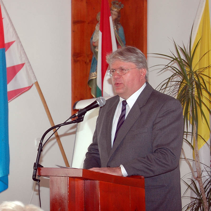 Dr. Czirok Sándor, a Göndöcs Benedek Középiskola igazgatója beszédében az oktatási intézmény a német nemzetiségi életben való szerepét hangsúlyozta.