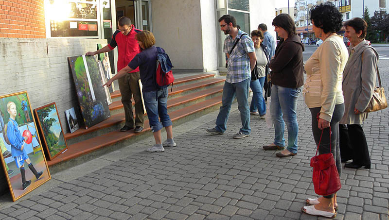 Rendhagyó módon zárult Herédi-Szabó Tibor és Haránt Ervin közös kiállítása a gyulai posta előtt ma délután. A tárlat két hete nyílt a Postagalériában, ahol a két gyulai születésű főiskolai hallgató festményeit, illetve grafikai munkáit mutatta meg a nagyközönségnek.