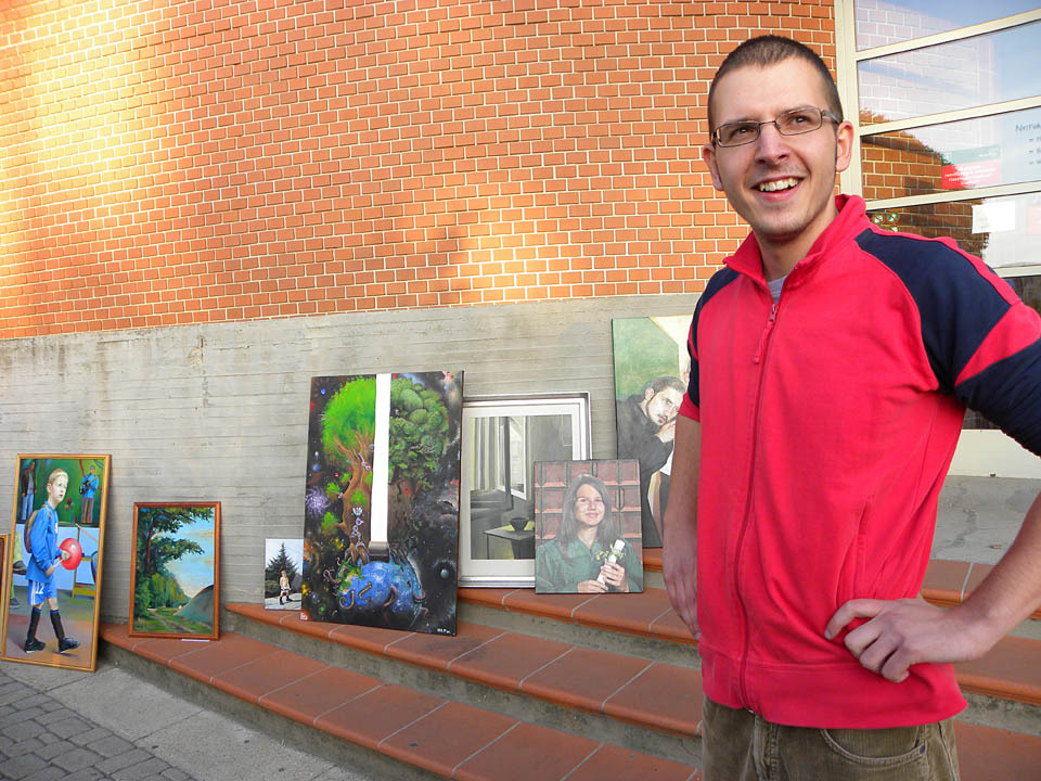 Herédi-Szabó Tibor lapunk kérdésére elmondta, egy évvel ezelőtt ötlött fel benne a bemutatkozó kiállítás gondolata. A rajz-informatika szakos hallgató 2008 óta foglalkozik komolyabban a festészettel, a tárlatra az elmúlt négy év terméséből válogatott. Elsősorban a környezetéből merít témát, az embereket igyekszik megörökíteni festményein. Barátja, Haránt Ervin, aki főként grafikai munkáit hozta el a Postagalériába, egészen más technikával dolgozik, így jól egészítik ki egymást a bemutatott képek – fejtette ki az alkotó.