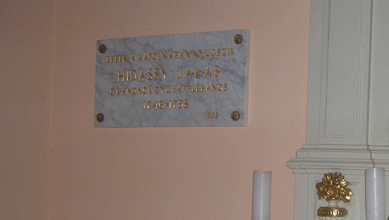 Van azonban egy személy, aki „teljes testi mivoltában” a templomban – a bejárat mellett, a baloldalon, a lorettói-kápolna alatt – alussza örök álmát. Igaz, neki nincs síremléke, csak egy, 1998-ban elhelyezett márványtábla emlékeztet arra, hogy „Ebben a kápolnában nyugszik HIDASSY JAKAB c. kanonok gyulai plébános 1746–1798”.