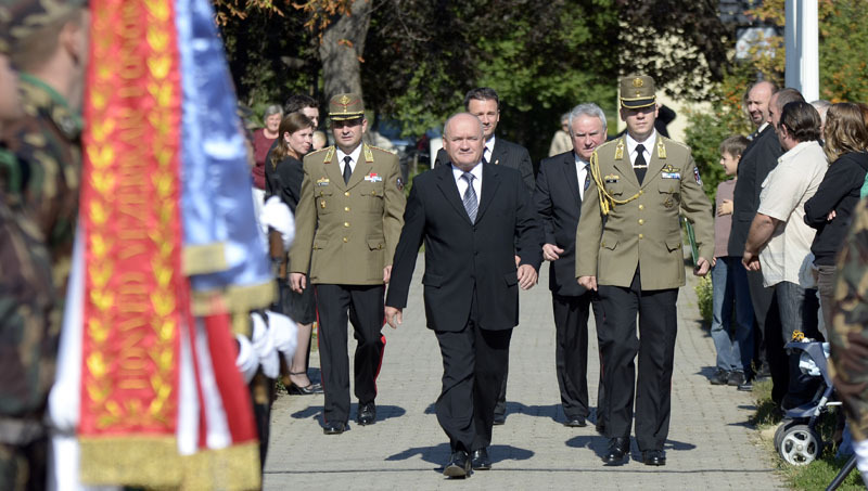 – Egy régi mondás szerint a halál az a sötét bevonat, ami nélkül semmit sem látnánk a tükörben. Az ilyen megemlékezések, mint a mai, az élet értékére, egyszeri és megismételhetetlen voltára és egyben nagyszerűségére figyelmeztetnek bennünket. A katona, a honvéd az az ember, aki tudja, hogy életének, egyetlen és megismételhetetlen életének önmagán túlmutató értelme van. Az ő feladata és hivatása nemzetének fegyveres védelme. Azért harcol, azért dolgozik, mert mindennél nagyobbra tartja azt, amit meg kell védenie. A katona nem azért harcol, mert gyűlöli azt, ami előtte van, hanem mert szereti azt, ami a háta mögött van, amit védelmez – emelte ki a honvédelmi miniszter.