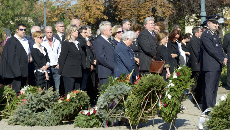 – Azért jöttünk el, mert emlékezni akarunk, mert tudjuk, hogy napról napra, tégláról téglára a mi életünkből is épül Magyarország. Igaz ez akkor is, ha az a munka, amit most végzünk, Magyarország megújítása nagyon nehéz feladat. Nem élünk könnyű időket, rengeteg gond és nehézség szorongatja mindennapjainkat. Ilyen időkben különösen fontos, hogy figyeljünk az aradi tizenhárom példájára, hiszen az ő történetük, az ő mártíriumuk, az ő áldozatuk és az ő helytállásuk olyan gránit alapkő, amelyre fel lehet és fel is kell építenünk közös jövőnket. Azt kívánom mindannyiunknak, hogy járjunk sikerrel ebben a küldetésben – zárta gondolatait a miniszter.