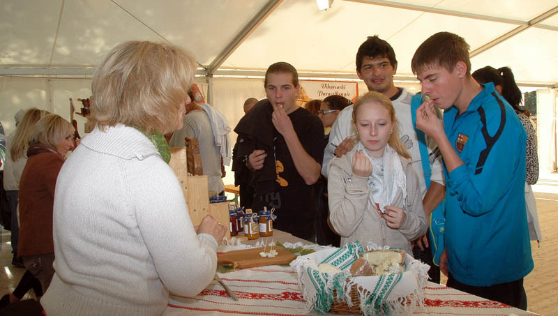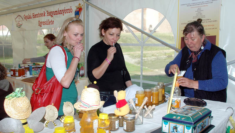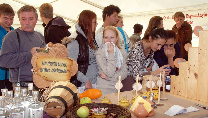 Ma délután a Gyulai Turisztikai Nonprofit Kft. Várkertben felállított sátrában minden betérőnek lehetősége nyílt megkóstolni a helyi termékeket. Meg lehet ízlelni a Gyulai Hentesek Hagyományőrző Egyesületének kolbászait és szalonnáit, a Gyulai Pálinka Manufaktúra számtalan féle gyümölcspárlatát, Lévai Ildikó saját készítésű, különleges lekvárjait. Szilágyi Ferencné különböző házi sajtokat kóstoltat, Újhelyi Péter finom biomézeket, Kovács Ákos pedig saját préselésű biogyümölcsleveket és mézet hozott a gasztronómiai bemutatóra.