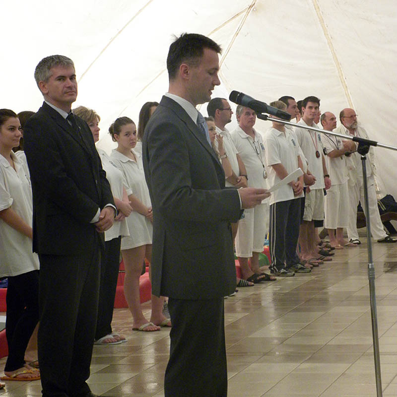A rendezvényen – melyen az úszóedző két neves tanítványa, dr. Hargitay András és dr. Wladár Sándor is részt vett – Gyula város polgármestere, dr. Görgényi Ernő köszöntötte a megjelenteket. A városvezető hangsúlyozta, az egészséges város koncepciójának lényegi és nélkülözhetetlen eleme a sport szeretetére való nevelés. Ennek komoly tradíciója van Gyulán, s az utóbbi időszakban felcsillant a remény, hogy a város a sportfinanszírozás és az infrastrukturális fejlesztések terén komoly előrelépéseket érhet el – tette hozzá a polgármester.
