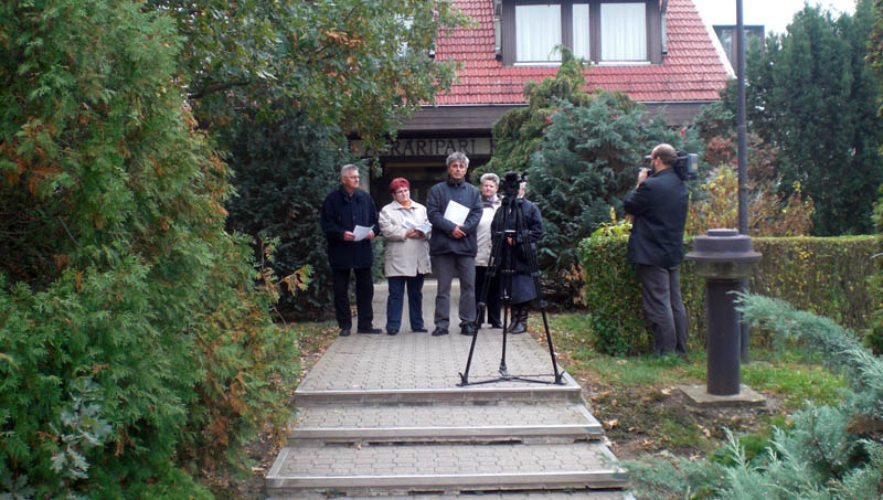 Árgyelán Mihályné, a gyulai Pannon Kör Egyesület elnöke is aggódó hangon beszél a Gyulai Húskombinátról, illetve emlékezteti a jelenlévőket egy korábbi demonstrációjukra, amely a „Kolbásztúra” néven vonult be a köztudatba, s az akkori civil mentőakcióval 1 milliárdos állami kezességvállalást sikerült kiharcolniuk a világszerte ismert gyulai cégnek. Árgyelán Mihályné az alábbi közleményt olvassa fel az újságíróknak.