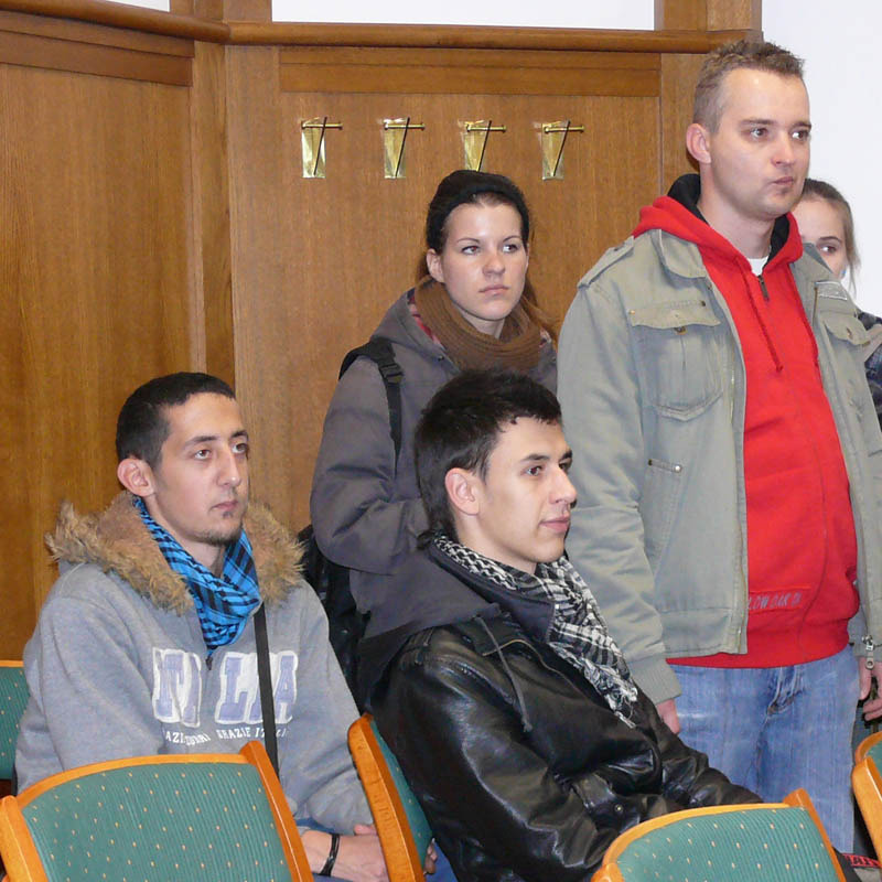 Sztrungáné dr. Tóth Tünde a Gyulai Törvényszék kollégiumvezető a díszteremben adott tájékoztatást a bírósági szervezet felépítéséről, a bíróság munkájáról, a polgári ítélkezésről és annak témaköreiről, valamint a polgári ítélkezés legfontosabb kérdéseiről. A bírónő kiemelt figyelmet fordított a szerződések témakörre. Hangsúlyozta, ha csak egy dolgot is megfogadnak az elhangzottakból, – konkrétan azt, hogy szerződést nem írnak alá anélkül, hogy elejétől a végéig elolvassák – akkor már nem volt hiába a látogatás.