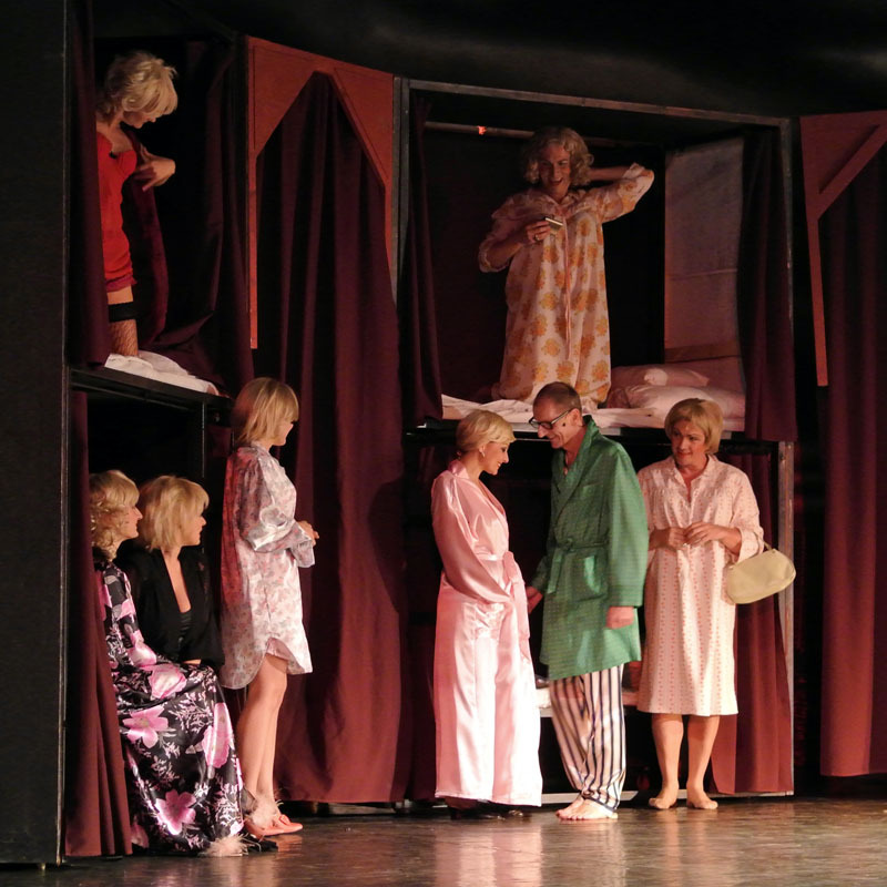 Telt ház fogadta tegnap este a Turay Ida Színház társulatát, amely ezúttal az 1959-ben bemutatott „Van, aki forrón szereti” című filmvígjáték forgatókönyve alapján készült musicalt, a „Sugar”-t vitte színpadra. A Bozsó József által rendezett zenés darabban a színészeket kísérő Bíró Bandnek is fontos szerep jutott, a négytagú zenekar játékával a Broadway hangulatát idézte a színházterembe.