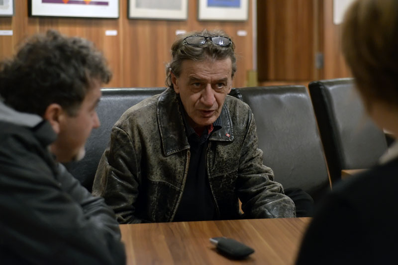 • Mucsi Zoltán: Nyitni ugyanakkor nem csak a művészi vonalon szükséges, hanem azért is, mert ma nagyon nagy a máshonnan érkező elszívó erő. Internet, mozi, koncertek, 154 tv-csatorna, rengeteg olyan dolog, aminek 30 éve csak a tizede volt meg a színház mellett. Mert 30 évvel ezelőtt egy évbe bejött 12 orosz, 3 lengyel, 1 román és 12 NDK-film, valamint még 6 amerikai, ami 12 évvel előtte készült. Nyilván fontos valahogy magunkhoz húzni, hogy kialakuljon egy közösségi réteg, kicsit mélyebb viszony annál, hogy beülnek, és megnéznek bennünket. Ezért társul hozzá egy személyes beszélgetés, vagy hogy egyáltalán a darabról ejtsünk pár szót. De iskolásoknál eleve lehet olyan a téma, aminél a diákok megnyílnak, szívesen megosztják a véleményüket azokról a problémákról amiket felhoznak, vagy elmondják, hogy mit váltottak ki bennük a látottak. Ha elmennek megnézni a Klammot és az tetszett, akkor valószínűleg A gyávára is beülnek, és hogyha mindkettőt látták, akkor lehet, hogy eljönnek A fajok eredetére is.
