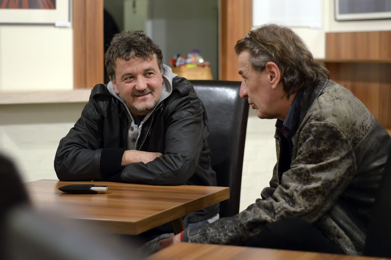 • Mucsi Zoltán: Ez személy- és darabfüggő. Épp a napokban mondta Péter, hogy az egyik szerepét előző nap este elejétől a végéig elmondta, úgy gyakorolt. De van olyan előadás, ahol már bejárópróbát sem tartunk. Számít az, hogy milyen a szerep, függ attól, hogy mennyit játszottuk, mert a negyedik előadáson nem olyan biztonsággal lépünk színpadra, mint a 225-en.