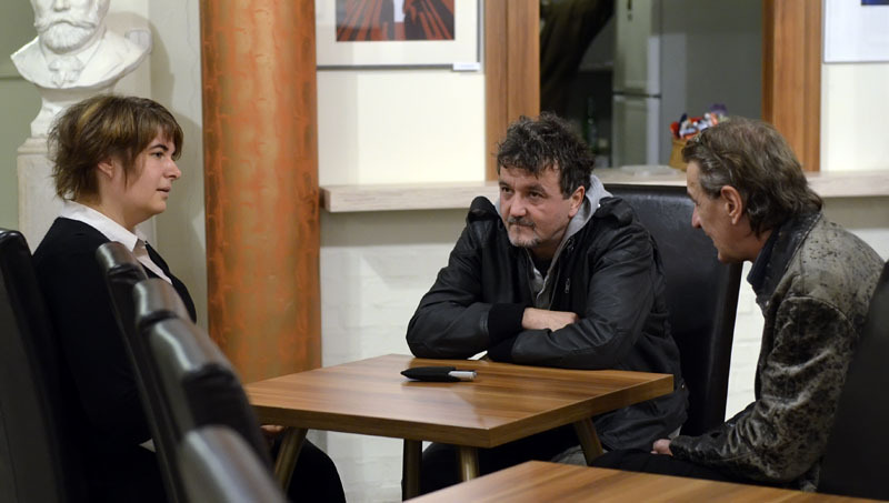 • Scherer Péter: Ennél az előadásnál még tervezünk egy változtatást, a végére gondoltunk még egy jelenetet betenni, de ahhoz még Istvánnal le kellene ülni gondolkozni, hogy az a lezárás vajon megtalálja-e a helyét. Most is van egy vége, de azt érezzük, hogy az elé a vége elé még elképzelhető, hogy be lehetne tenni azt a jelenetet.