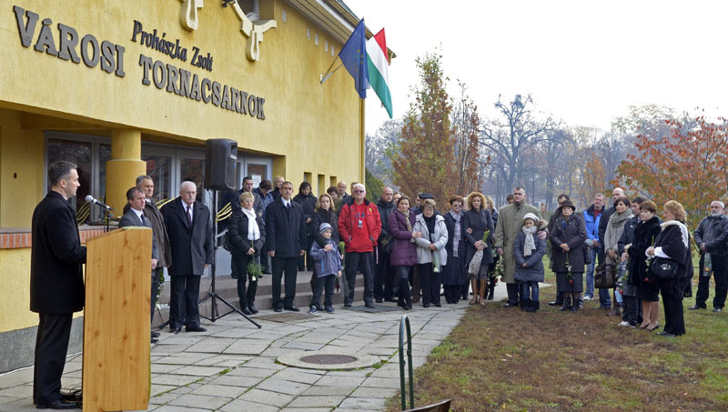 - Szívfacsaró, de kétségtelenül szép ünnepi esemény ez, hiszen egy nagyszerű férfi emléke előtt tiszteleghetünk. Tavaly, a januári sportbálon éppen ebben az épületben hirdettem meg, nevezzük el sportlétesítményeinket a gyulai sportélet legkiválóbbjairól, melyhez javaslatokat kértem. Emberi elmében akkor még nem merülhetett fel annak a gondolata, hogy a névadó Prohászka Zsolt lehet. Egész évben nem érkezett olyan javaslat, amelyet széleskörű konszenzus övezett volna. A kérdésre azonban a sors adott tragikus választ – mondta a megrendítő eseményen a városvezető.