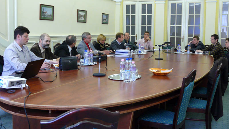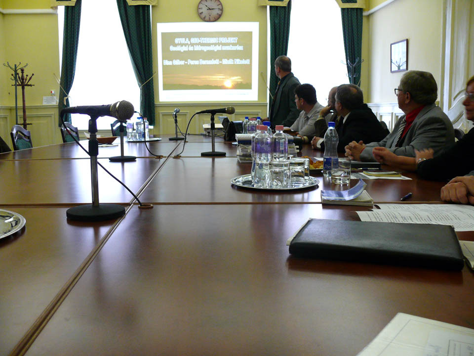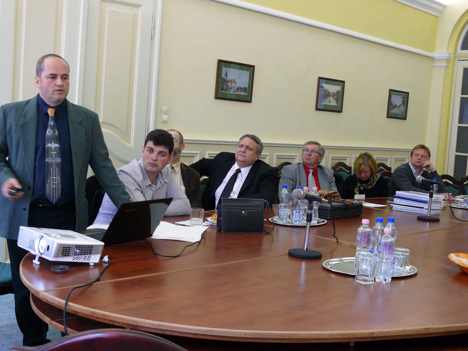 A konferencia előtt Galbács Mihály alpolgármeter köszöntötte a projektben szerepet vállalókat: romániai részről a Nagyváradi Egyetem képviselőit dr. Zétényi Zsigmondot, dr. Rosca Marcelt, Blagu Alint, magyar részről Dina Gábort és Kóbor Balázst.