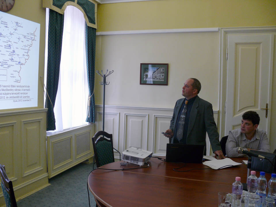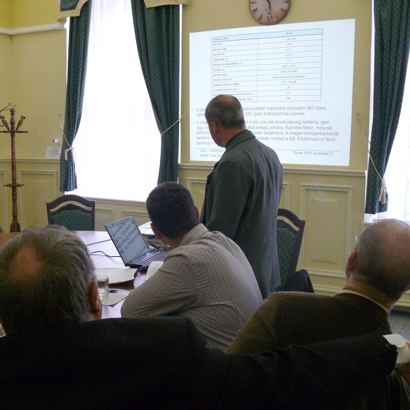 Kóbor Balázs a Brunner Hőteknika Kft. képviseletében arra hívta fel a figyelmet, hogy a termálenergetikát hadba kell fognunk ebben a térségben is, miután a dél-alföldi régió geotermális lehetőségei – annak ellenére, hogy nagyszerűek – volumenét tekintve kiaknázatlannak tekinthetők. Gyula speciális eset, mivel geotermális lehetőségei nem mérhetők más településekhez. Megnehezíti a geotermális energiafelhasználást a térségben, hogy számos kút van már a városban és ezek védőidomait egy geotermális projekt nem érintheti. A termálvízbázist nem veszélyeztetheti egy másik termálprojekt. Az energetikus összegzésül elmondta, a tanulmány elkészülte megalapozója lehet egy stratégiai gondolkodásnak, tudniillik részletesen kidolgozott hosszú távú energetikai koncepció nemcsak Gyulának, hanem Magyarországnak sincsen, és mindenképpen ebbe az irányba kell elmozdulni. Egy geotermális projekt felvázolása jó alapot adhat erre.