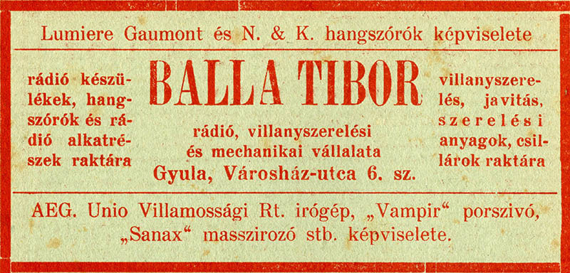 A barna mahagóni vagy fekete dobozba rejtett akkumulátorok, anódtelepek és lámpák mibenléte, a hullámhossz, rövidhullám, detektor, hangszóró és fülhallgató sejtelmesnek tetsző fogalma lassanként mindenki előtt ismeretessé vált. A megfelelő készülék kiválasztásában, felszerelésében kezdetben a Magyar Távirati Iroda Városház utcai gyulai kirendeltsége adott segítséget, a helyi ipartestület pedig nyolchetes rádiókezelési tanfolyamot indított. Gyulán a Farkas-féle vasáruház tartott állandóan készleten alkatrészeket, az iparosok közül eleinte Bekker Antal bádogos és Balla Tibor villanyszerelő forgalmazott rádiófelszerelési cikkeket. Oroszlány Gábor szerint a Magyar Tudományos Akadémia nyelvújító szakosztálya által hanghalásznak keresztelt rádió lázban tartotta a közvéleményt. A lapszerkesztő 1925-ben úgy tartotta, „el fog jönni az idő, amikor minden ember a zsebében fogja hordani a rádiót, akárcsak az óráját vagy a zsebkendőjét”.