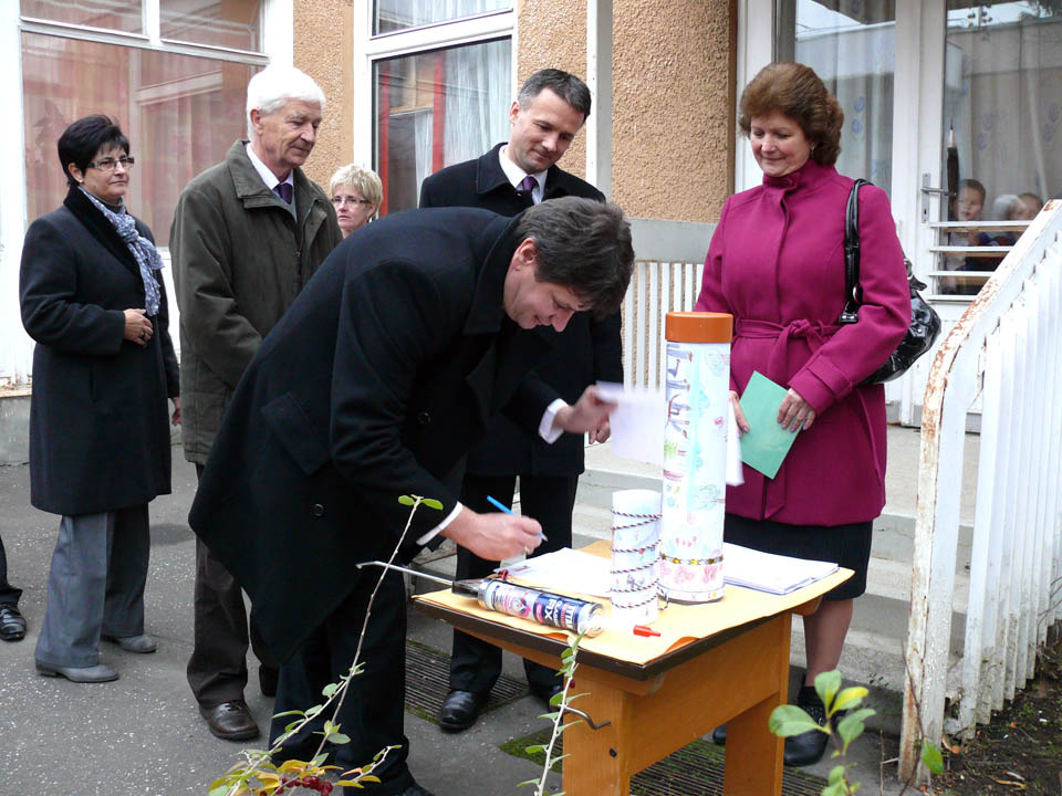 Önkormányzati képviselők, országgyűlési képviselők, intézményvezetők részvételével és nagy médiaérdeklődés kíséretében rakták le ma délután a Mágocsi úti Óvoda kapacitásbővítése, korszerűsítése című projekt ünnepélyes alapkövét.