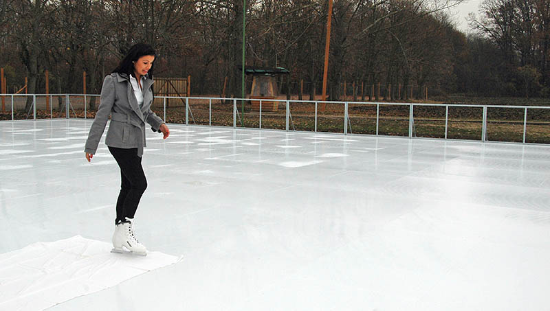 A Gyulai Hírlap Online-on már beszámoltunk arról, hogy napokon belül egy négyévszakos korcsolyapályával bővül a Gyula és Békéscsaba között található Pósteleki Szabadidőpark. A szabadidőpark tulajdonosa, a KÖVIÉP Kft. pályázatot nyert egy egész évben használható műanyag borítású mobil korcsolyapálya kialakítására. A 611 m² területű, ún. zselés műanyag felületű pálya december 6-ától nyitja meg kapuit a nagyközönség előtt. A körülbelül 18x36 méteres pályán 120-150 ember tud majd egy időben korcsolyázni. A speciális műanyag borítású pályához nem szükséges fagyasztás, csak hetente egyszer környezetbarát anyaggal való síkosítás.