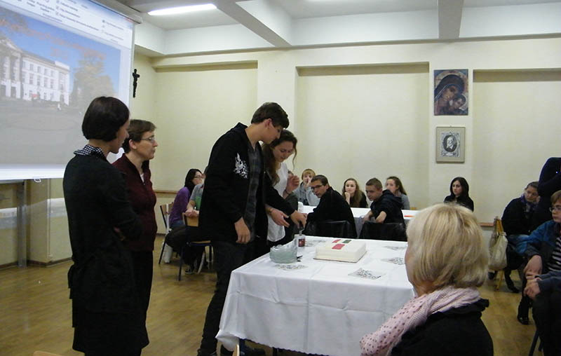 Október 17-én reggel immáron ötödik alkalommal, 15 diákkal és 2 kollégámmal, Szákné Bajnai Zsuzsánnával és Vadász Csabával indultunk Radom városába, a Néri Szent Fülöp Katolikus Gimnáziummal fennálló partnerkapcsolatunk révén. Az esti megérkezésünkkor a családok nagy-nagy szeretettel fogadták a hozzájuk érkező gyerekeket. Másnap bepillantást nyerhettünk az iskola életébe, majd Radom nevezetességeivel ismerkedtünk meg.