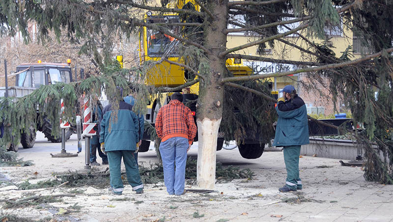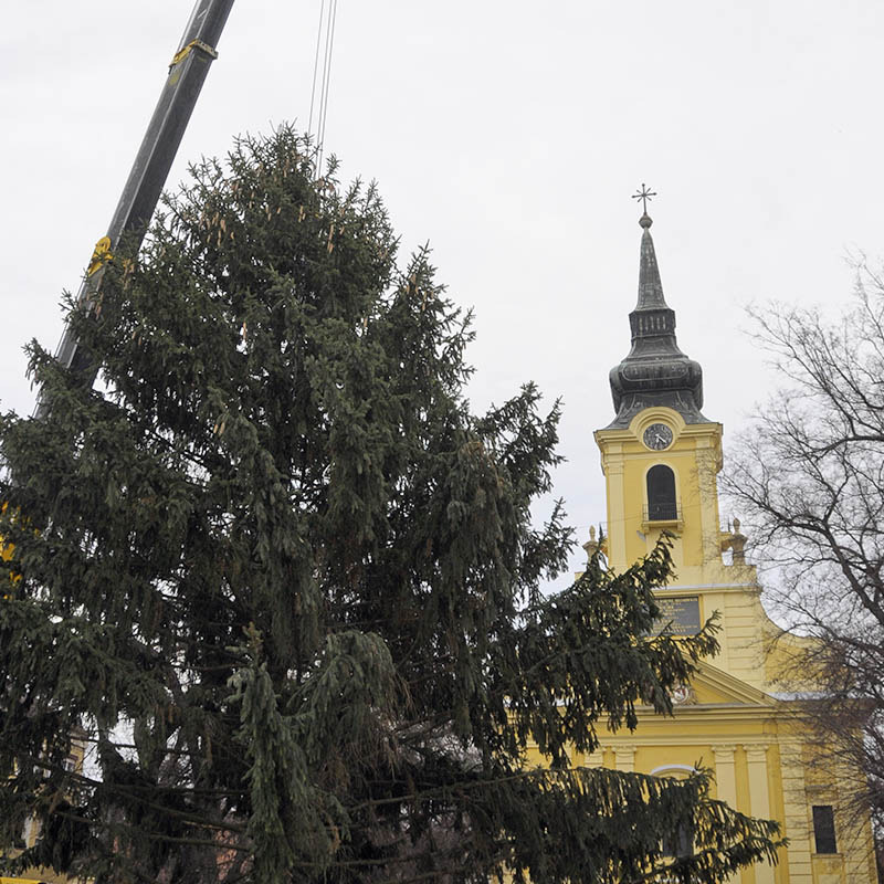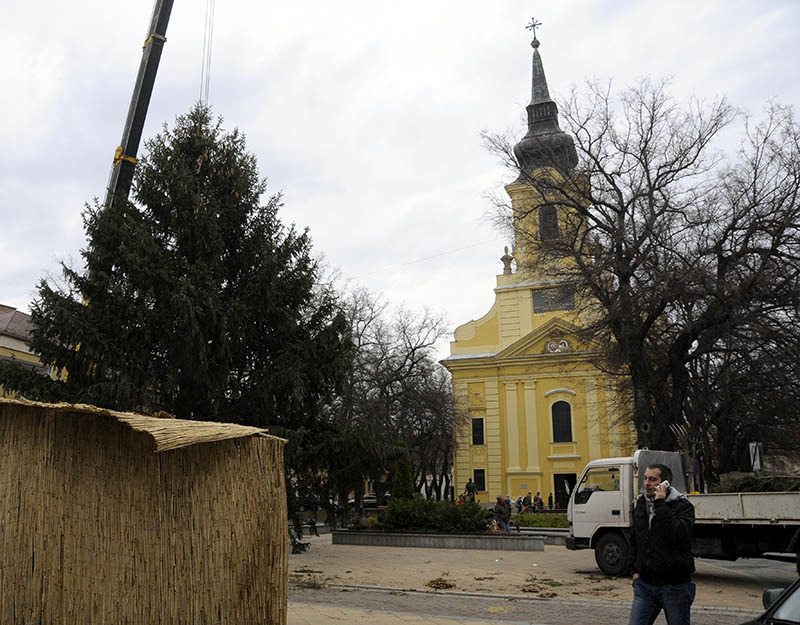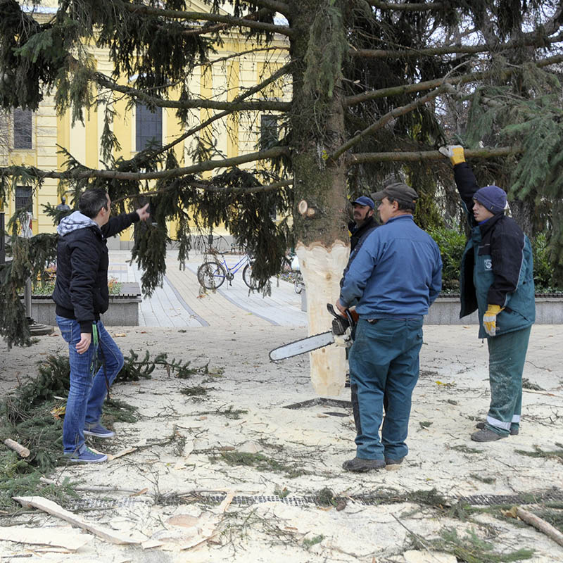 - Lakossági felajánlásból egy 14-15 méteres fenyő került a Kossuth térre, a Harruckern téri óriás, a 17 méteres, mintegy három tonnás fát a Kastélykertből hoztuk, a vár előtti, 12 méteres ezüstfenyő pedig a Vörösmarty utcából, Vigyikán György és családja felajánlásából származik. A hatalmas fenyők díszítése még ma megkezdődik, hogy a vasárnapi adventi ünnepre kész legyenek – mondta a Gyulai Hírlapnak a helyszínen Hőgyes Elek, a rendezvény koordinátora.
