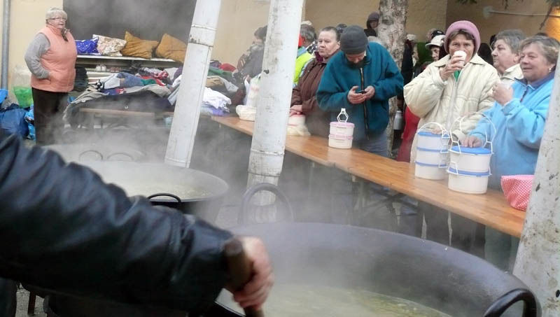 Német-magyar-osztrák összefogással ételosztást rendeznek a hajléktalanszállón december 5-én. A Tanyavilágban Élők Érdekvédelmi Egyesülete képviseletében Csordás József és felesége Erzsike veszi ki a részét a karitatív tevékenységben Mikus Évával, Gerhard Stengellel, a Koppányi családdal, Schneider Vernével és feleségével Marold Krisztinával egyetemben. A csapat 100 fő részére készít Mikulás napja alkalmából csülökpörköltet burgonyával és savanyúsággal. Az ebéd után gyümölcsöt és édességet is kínálnak a rászorulóknak.
