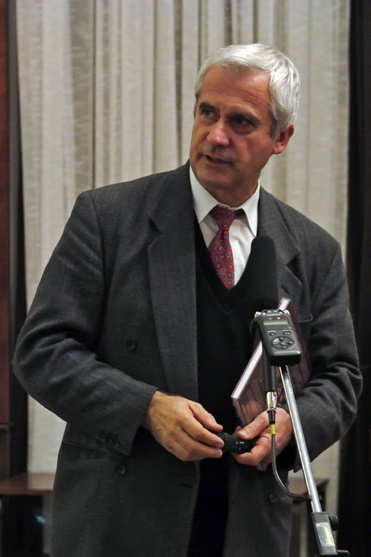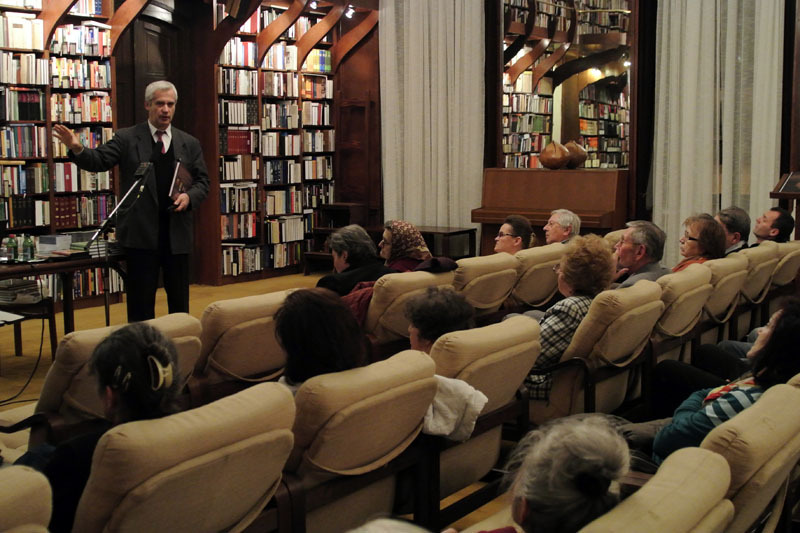 Munkácsy a jellemek drámai festője - jelentette ki Reisinger János. A festő Krisztust fehér ruhában ábrázolja, megkötözött kézzel. Pilátus is fehér ruhában van. Krisztus az igazságot mindig szeretettel párosítja. Bátran néz Pilátusra, aki viszont kerüli a tekintetét. Krisztus Pilátusért küzd, hogy ne ítéljen egy ártatlant halálra. Pilátus úgy határoz, Heródeshez küldi, döntsön ő. A hatalom igazságával Jézus az igazság hatalmát állítja szembe. Ma is ez a kérdés áll előttünk - mondta az előadó.