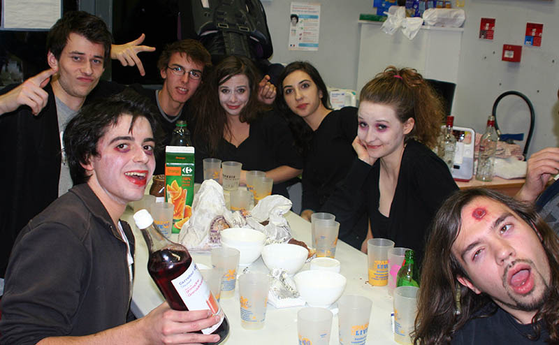Hogy a hét ne csak a munkáról szóljon, kinntartózkodásunk alatt csoportosan meglátogattuk a közeli Lyon városát, ahol szebbnél szebb épületeket és tereket láthattunk. A hét során francia barátaink minden nap különleges ételeket készítettek nekünk. Egyes napokon legalább 30 féle étel került az asztalra, valamint a hét minden percében el voltunk látva különböző gyümölcsökkel, sós és édes nasikkal. (Emiatt a magyar csapat szinte minden tagja fel is szedett pár kilót.) Talán meg sem kell említeni, de a hét során minden estét közös bulival zártunk, ami minden esetben jammelgetéssel, improvizálással, kötetlen örömzenéléssel párosult. Egyik nap egy halloween party-t is rendeztek, melyet megelőzően elvittek minket egy zenés-táncos színházi előadásra, melyben zombik, vámpírok és hasonló rémisztő jelmezesek forgolódtak a színpadon.