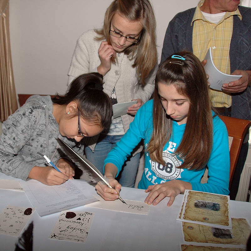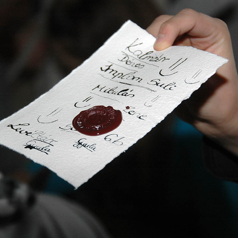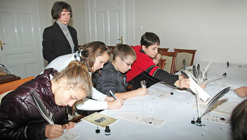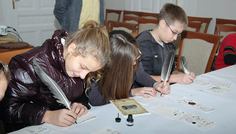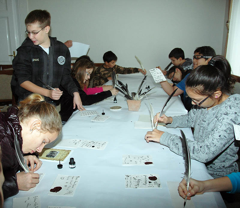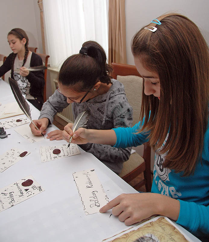 A program összesen nyolc 2x45 perces órában zajlik. Az első óra általában eredeti iratok bemutatásával kísért előadás, a második óra a gyakorlati feladatoké. A mai napon a diákok kipróbálták, miként lehet írni merített papírra metszett lúdtollakkal, gyakorolták a különböző levelek hajtogatását, pecsételését és a pecsétöntés más formáit is.