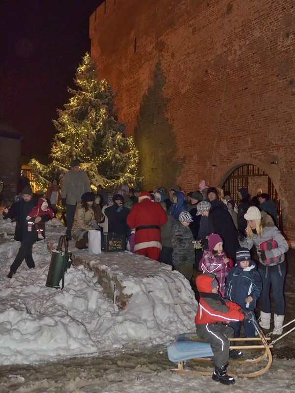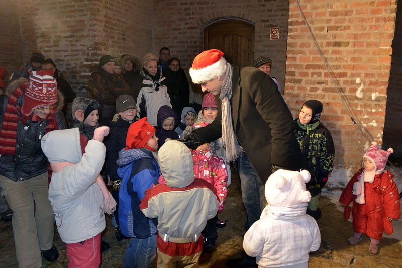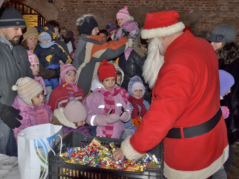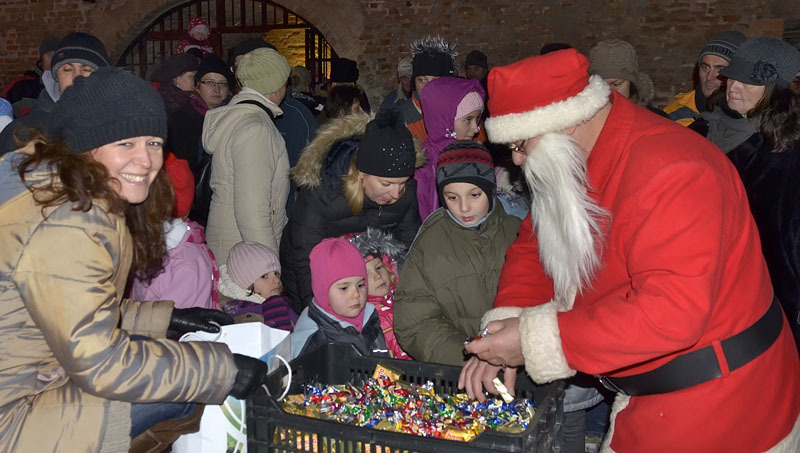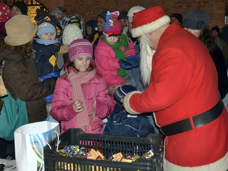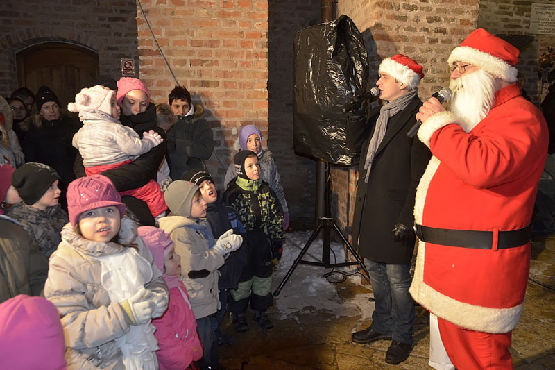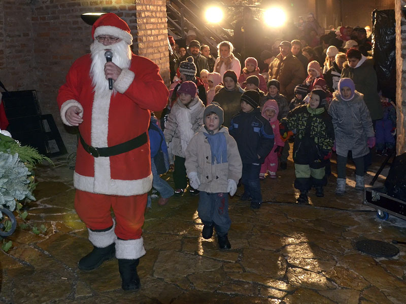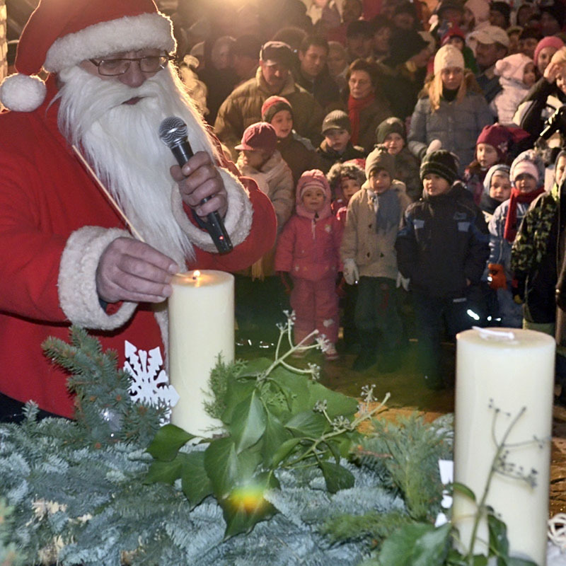 A hófehér tájban már messziről világítottak a gyulai vár előtt felállított karácsonyfa fényei, a várudvar pedig a Hull a pelyhes fehér hó kezdetű daltól volt hangos. A kicsik vidáman énekeltek együtt a Mikulással, aki hálából felelevenítette nekik Szent Miklós püspök történetét, majd meggyújtotta a város adventi koszorúján a második gyertyát. Az ünnepség végén a Télapó édességgel ajándékozta meg a vár előtt várakozó csöppségeket.