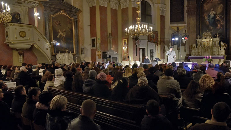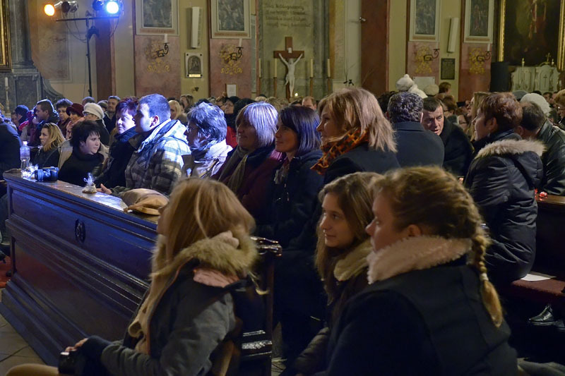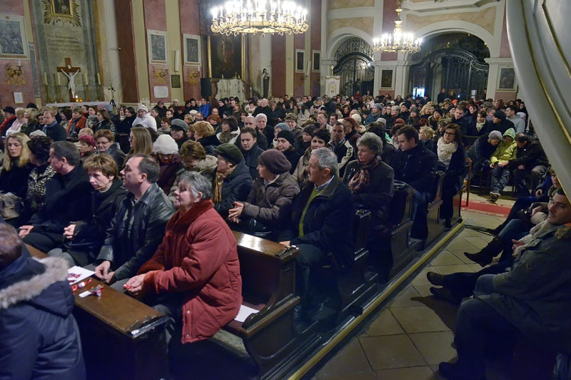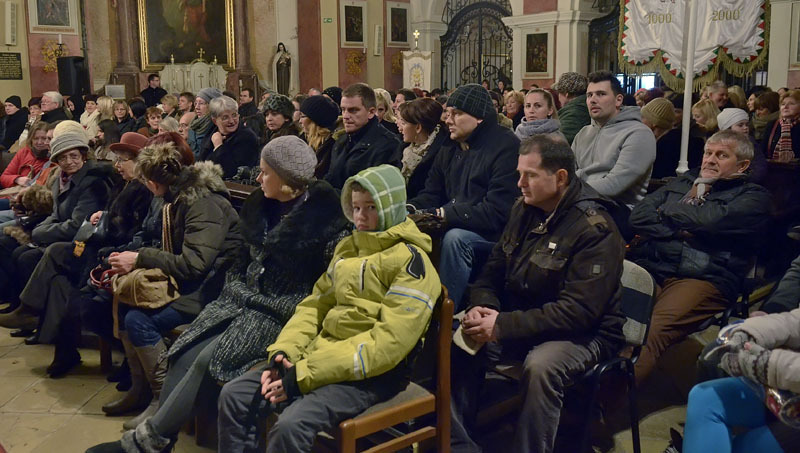 A vasárnapi városi ünnepség után kezdődő adventi koncerten teljesen megtelt a gyulai belvárosi katolikus templom, hogy még a több oszlopban felsorakoztatott pótszékek is kevésnek bizonyultak. Az oltár előtt Takács Nikolas és a Fool Moon énekegyüttes adott hangversenyt.