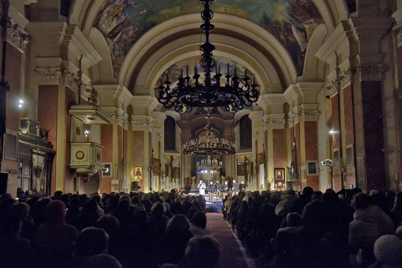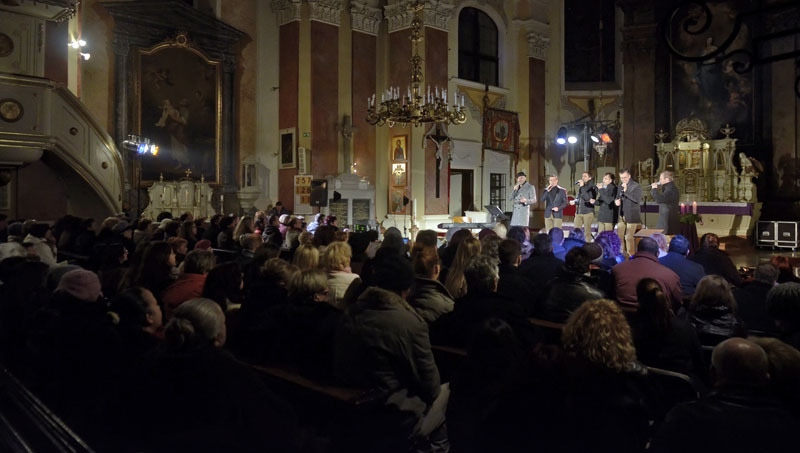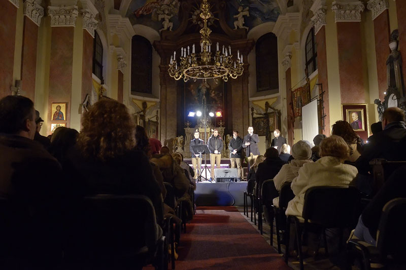 Az ifjú énekesekből álló vokálegyüttes egy eredetileg ukrán népdalból lett karácsonyi számmal kezdte repertoárját. Estjük során jól érvényesült a sok szólam, búgtak a basszusok, zengtek a magasabb frekvenciák a hatalmas térben, az impozáns falak között. Gospelkoncertjükön elhangzottak ismert néger spirituálék, például a Nobody Knows, a Happy Day és angolszász karácsonyi dalok is, mint a Holy Night, vagy a Jingle Bells.