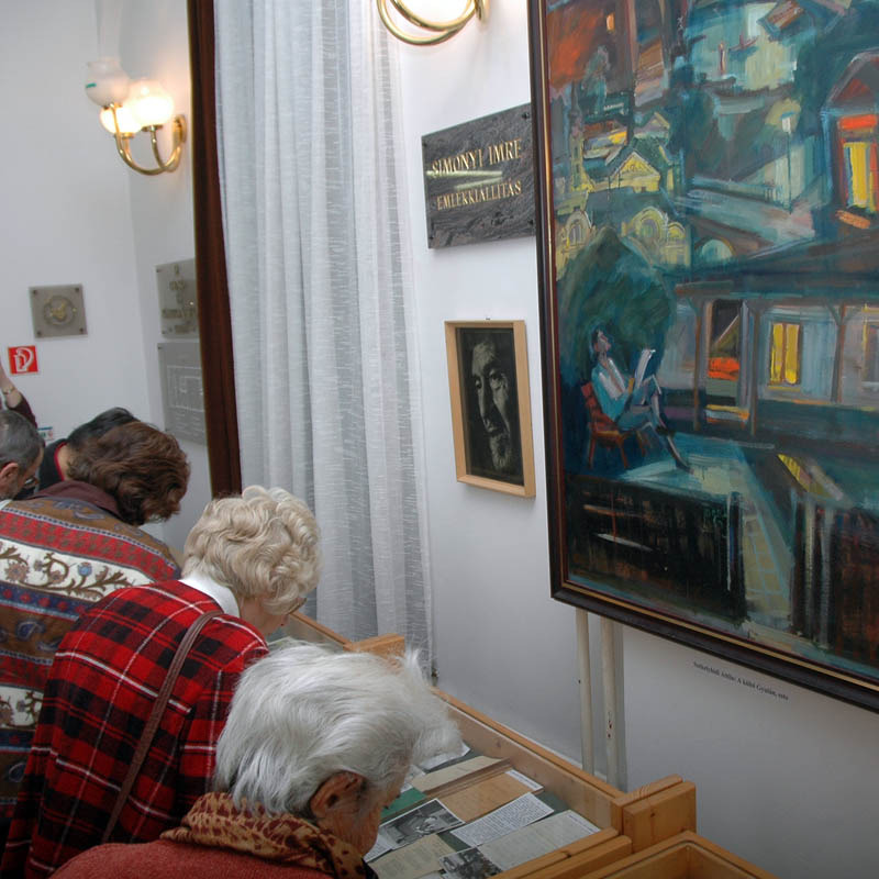 A memoárok közben Tóth Tibor a költő több költeményét is bemutatta, elhangzott a Krétarajzok a régi Gyuláról, A Körös, a Leckemondás, a Ha jössz, szívem című versek. Dézsi János a visszaemlékezések után felkérte az est vendégeit, hogy tekintsék meg az emlékkiállítást, amely az egykori Simonyi-emlékszoba műtárgyaiból – immáron – a Simonyi-olvasóterem előterében látható.