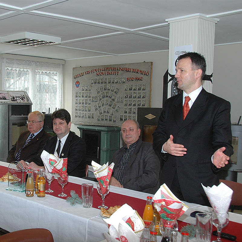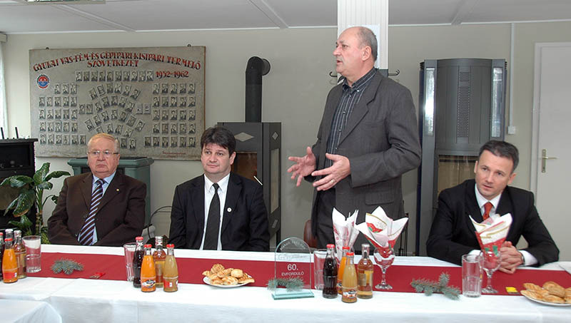 Dr. Görgényi Ernő a hatvanadik évforduló alkalmából emléklapot és egy ezüst Erkel-emlékérmet adott át a Gyulai Vasipari Kft. ügyvezetőjének. Az elmúlt hat évtized emlékére fotókiállítás nyílt az ebédlőben, a tulajdonosok pedig fát ültettek az intézmény területén.