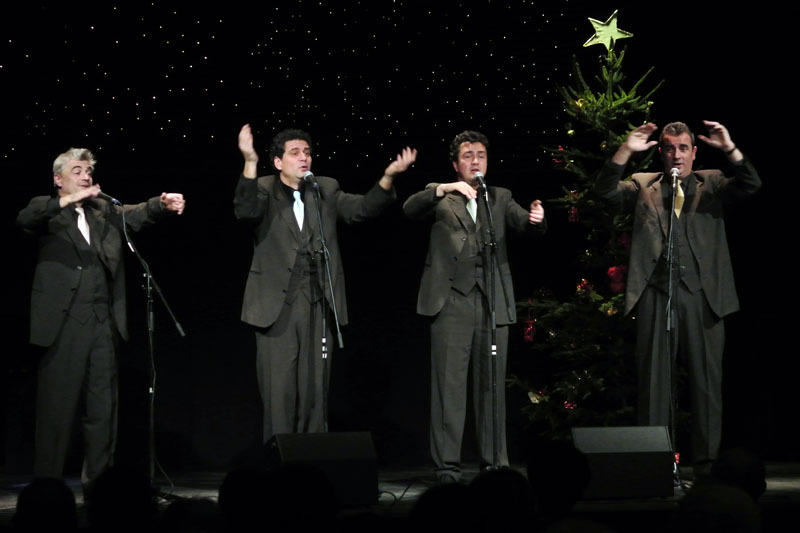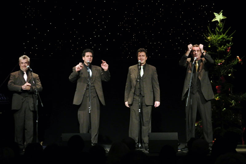 A Gyulai Várszínház előadásában, tegnap este a Four Fathers énekegyüttes adott koncertet a gyulai kamarateremben. Az eMeRTon-díjas a capella formáció a 20th Century Fox négyszólamú szignáljával indított, majd rögtön belevágott repertoárjába, amelyben zenei kíséret nélkül elhangzottak gospelek, karácsonyi dalok, valamint hazai és világslágerek is.