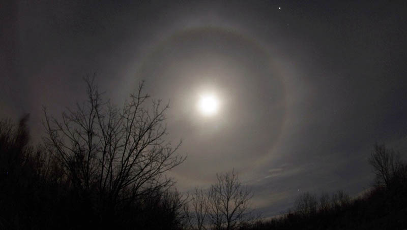 A gyulai fotográfus Lambert Károlytól, az Országos Meteorológiai Szolgálat munkatársától kapott felvilágosítást a témáról. Ebből kiderül, a jelenség oka, hogy a Hold fényét magasszintű, vékony jégtűkből, jégkristályokból álló Cirrus-felhőzet töri meg.