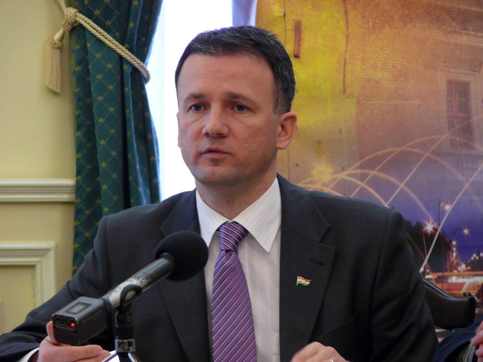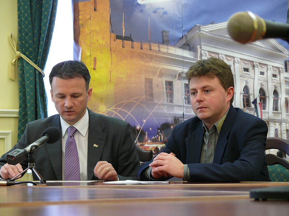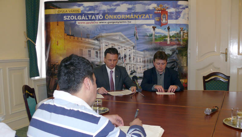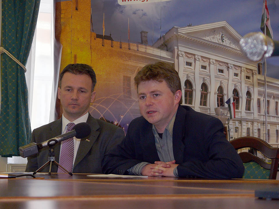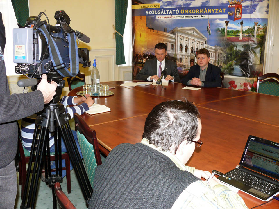 Dr. Görgényi Ernő és Alt Norbert sajtótájékoztatót tart. Fotó: Gyulai Hírlap - H. É.