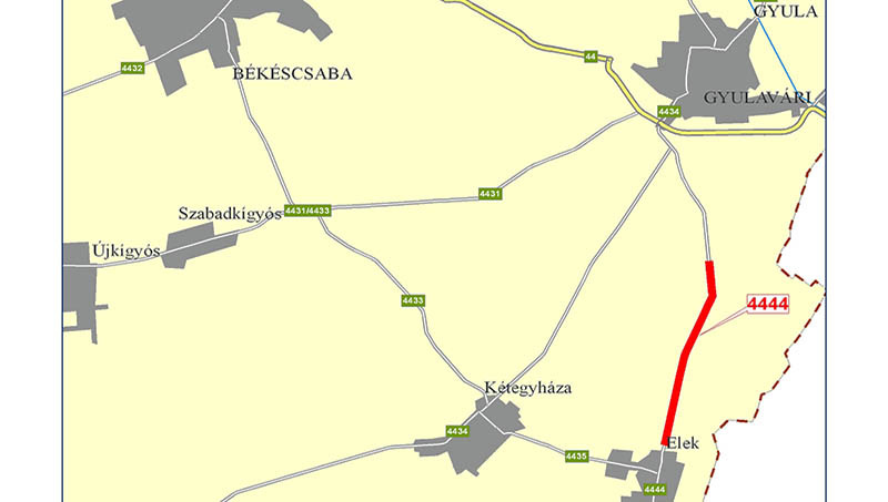 Az Új Széchenyi Terv keretében megújult a 4444-es jelű összekötő út Gyula-Elek közötti 6,3 kilométeres szakasza. A kivitelező kicserélte az útalapot, megerősítette az aszfaltréteget, kiépítette a szükséges forgalomtechnikai és biztonsági elemeket, az út egyéb tartozékait és elvégezte a közösségi közlekedés létesítményeinek felújítását is, valamint tartós kivitelű burkolati jeleket festett fel a teljes felújított szakaszon. A beruházás összesen 523 millió forintból valósult meg.