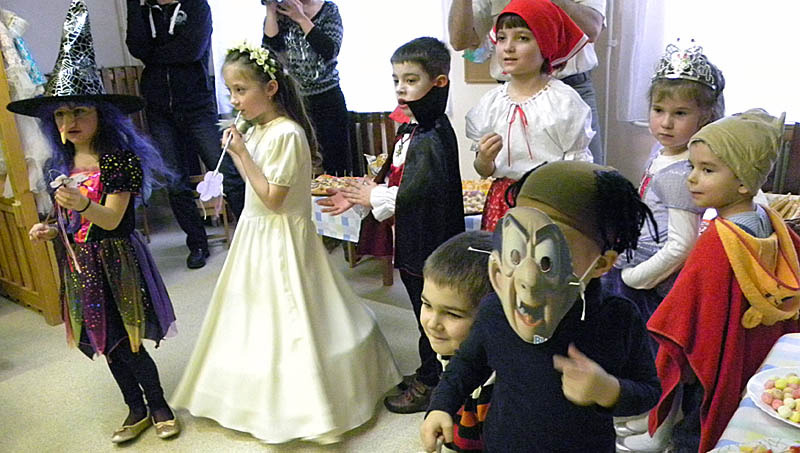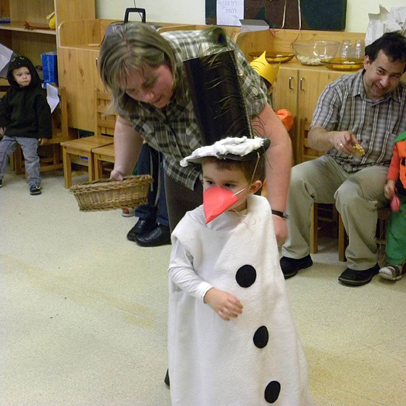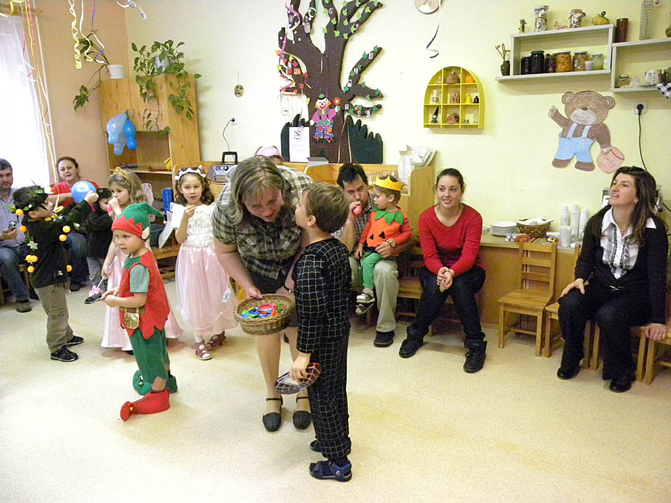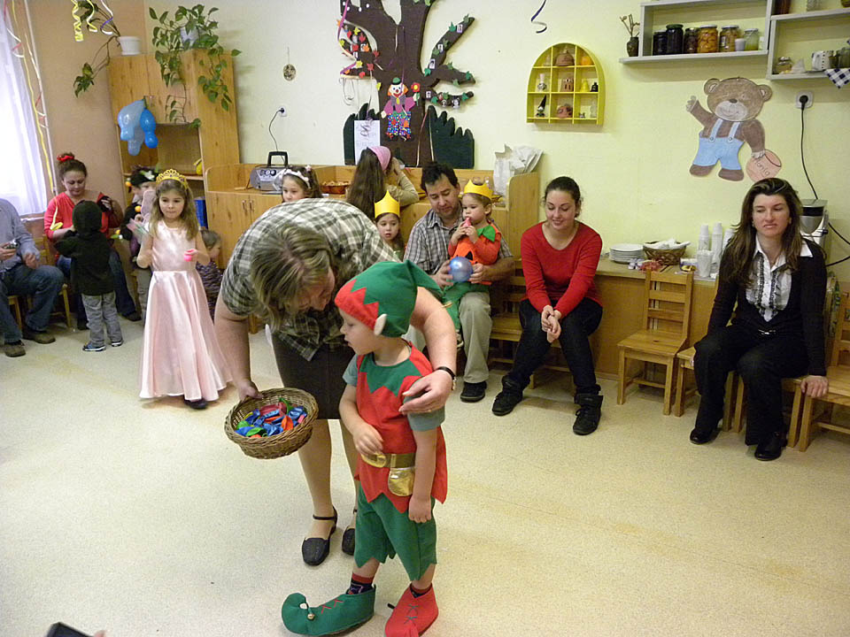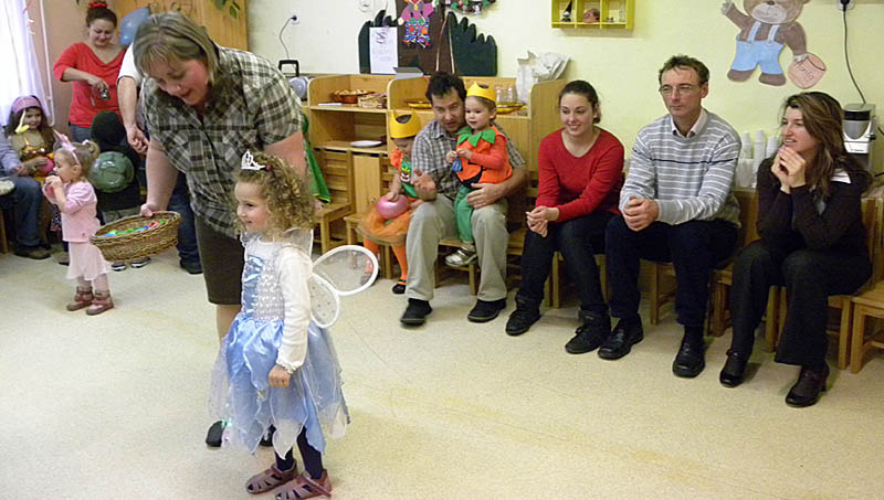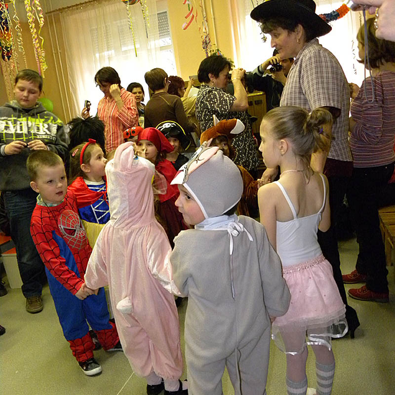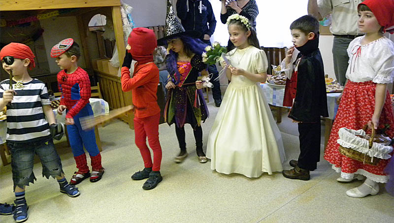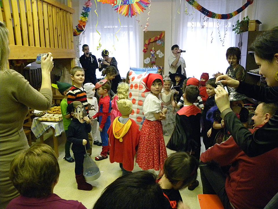 Együtt farsangoltak a szüleikkel a németvárosi óvodások ma délelőtt. A legtöbb gyermek idén is pókembernek, batmannek vagy tavasztündérnek öltözött, de találkozhattunk legó-, hóember-, kalóz-, Túró Rudi-, Piroska, boszorkány- vagy katonajelmezbe bújt ovisokkal is. A farsangi mulatságra a nagymamák fánkot sütöttek, az anyukák pedig szendvicseket és süteményeket készítettek.