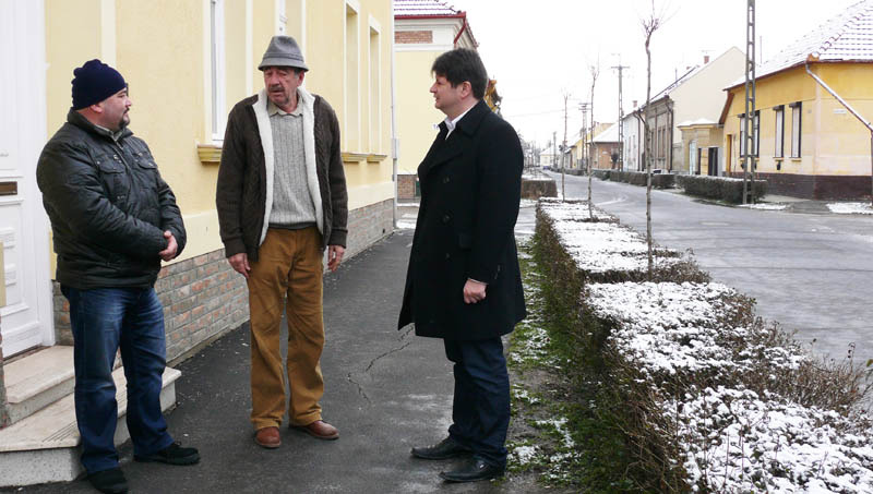Balogh Lajos és Gajda Róbert egy Kálvin utcai lakossal. Fotó: Gyulai Hírlap - H. É.