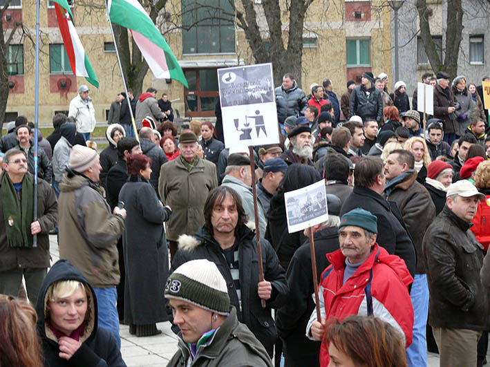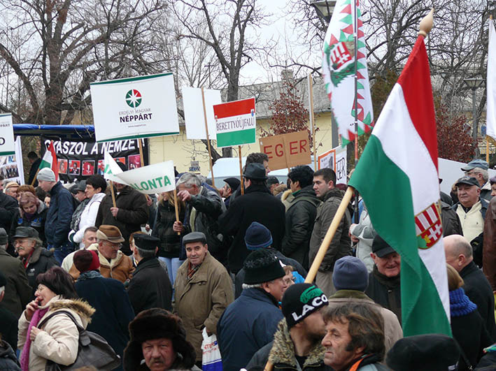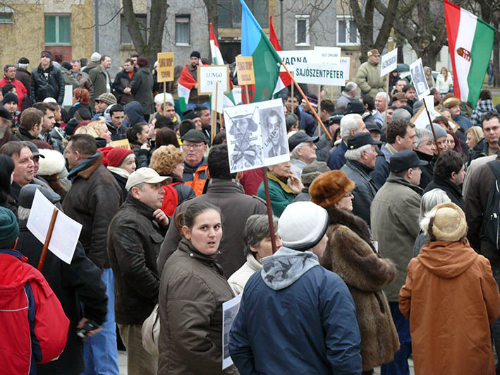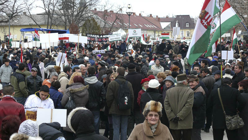 Békemenet – Egyre nagyobb a tömeg a Kossuth téren, a katolikus gimnázium előtt