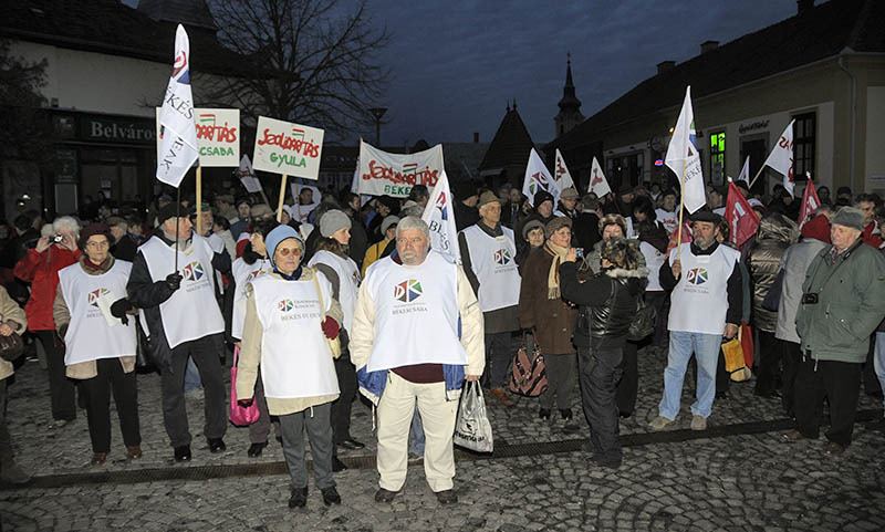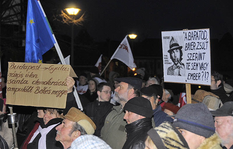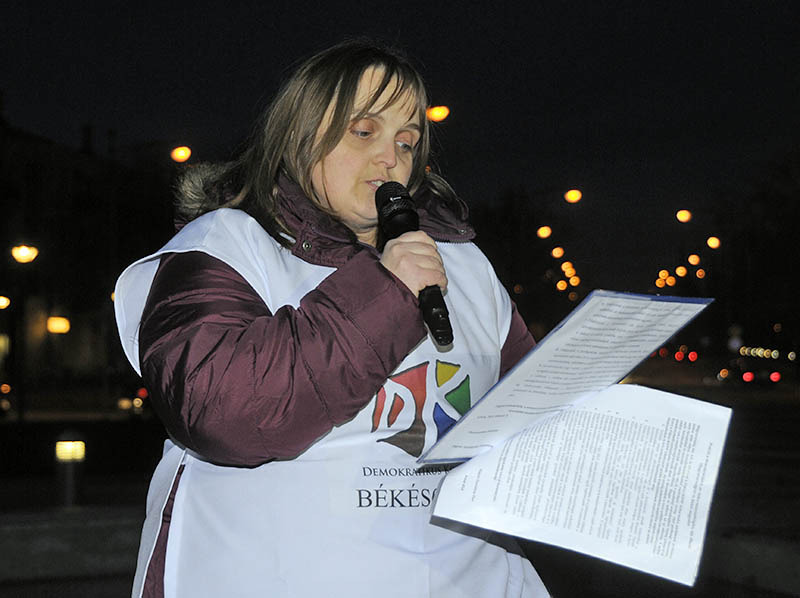 A tüntetőknek Árgyelán Erzsébet, a Demokratikus Koalíció gyulai vezetője olvasta fel a – kezdetben szolid pfujolással kommentált – petíciót, melyet teljes terjedelmében itt olvashatnak.
